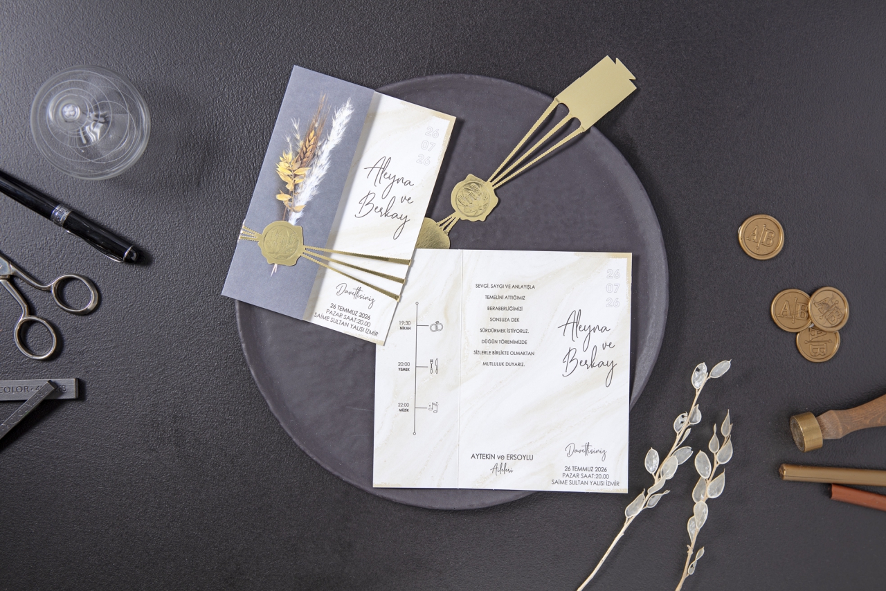 Zarif detaylarla tasarlanmış, özel günlerinize anlam katacak şık davetiye modeli.
