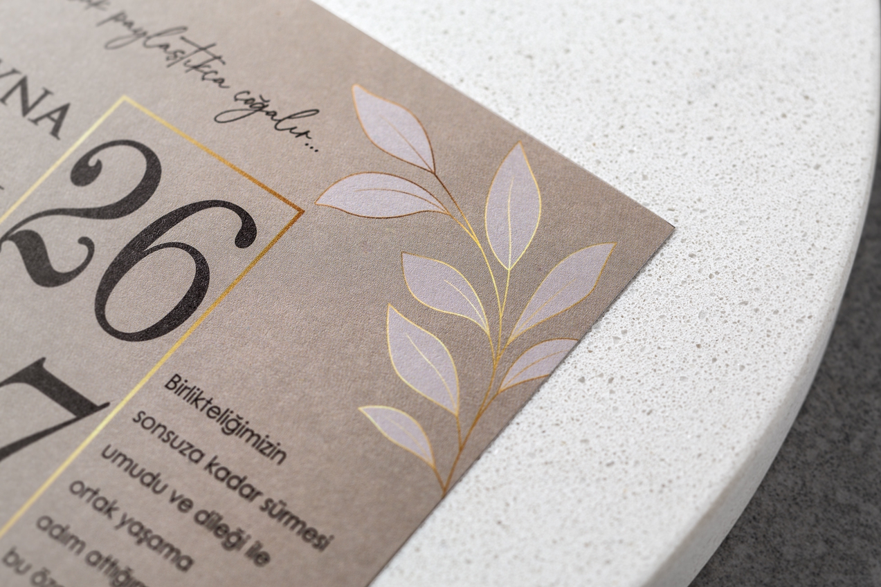 Zarif detaylarla tasarlanmış, özel günlerinize anlam katacak şık davetiye modeli.