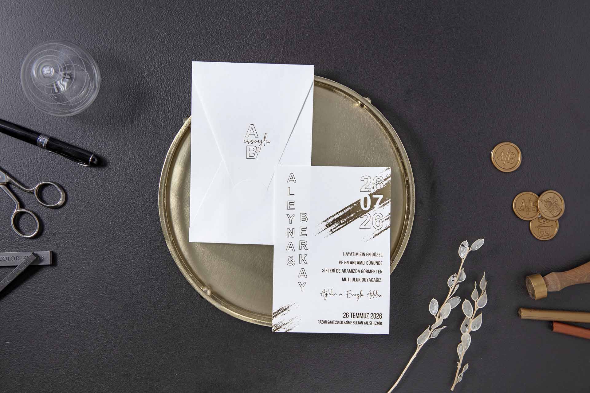 Zarif detaylarla tasarlanmış, özel günlerinize anlam katacak şık davetiye modeli.
