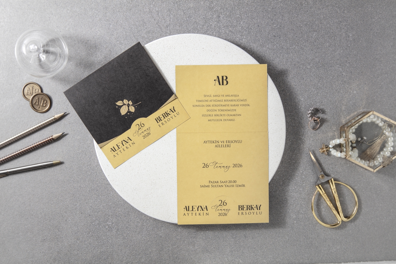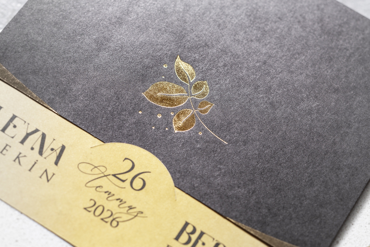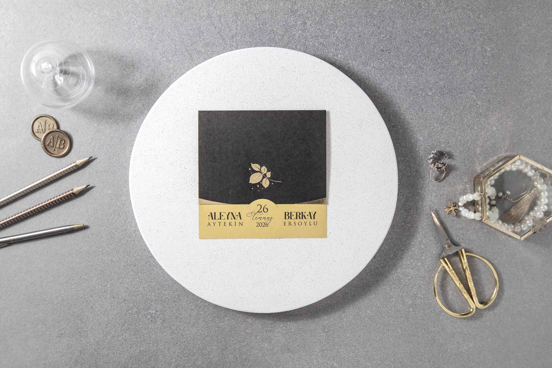 Zarif detaylarla tasarlanmış, özel günlerinize anlam katacak şık davetiye modeli.
