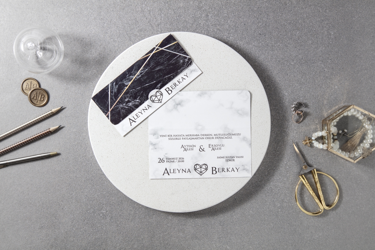Zarif detaylarla tasarlanmış, özel günlerinize anlam katacak şık davetiye modeli.